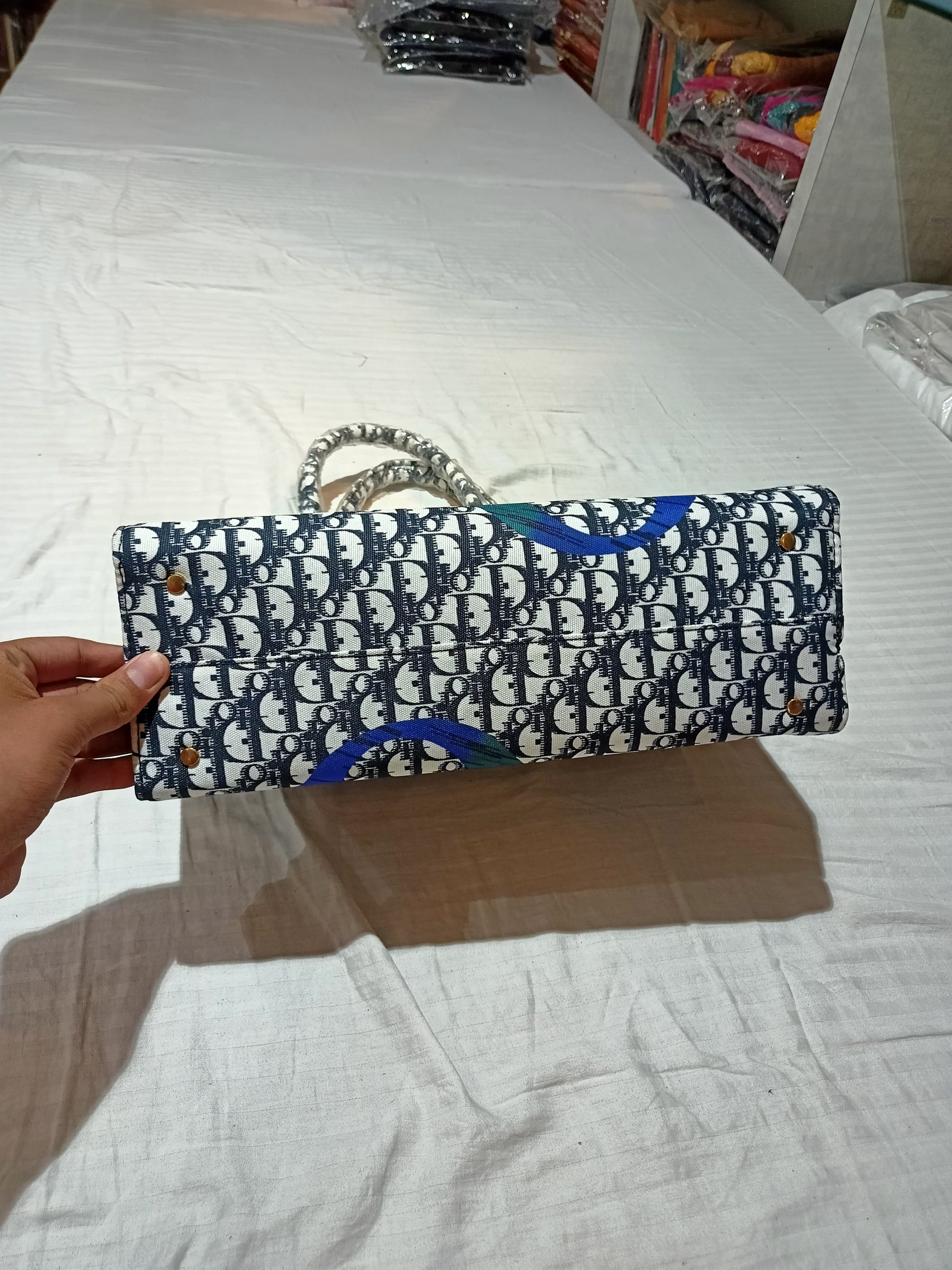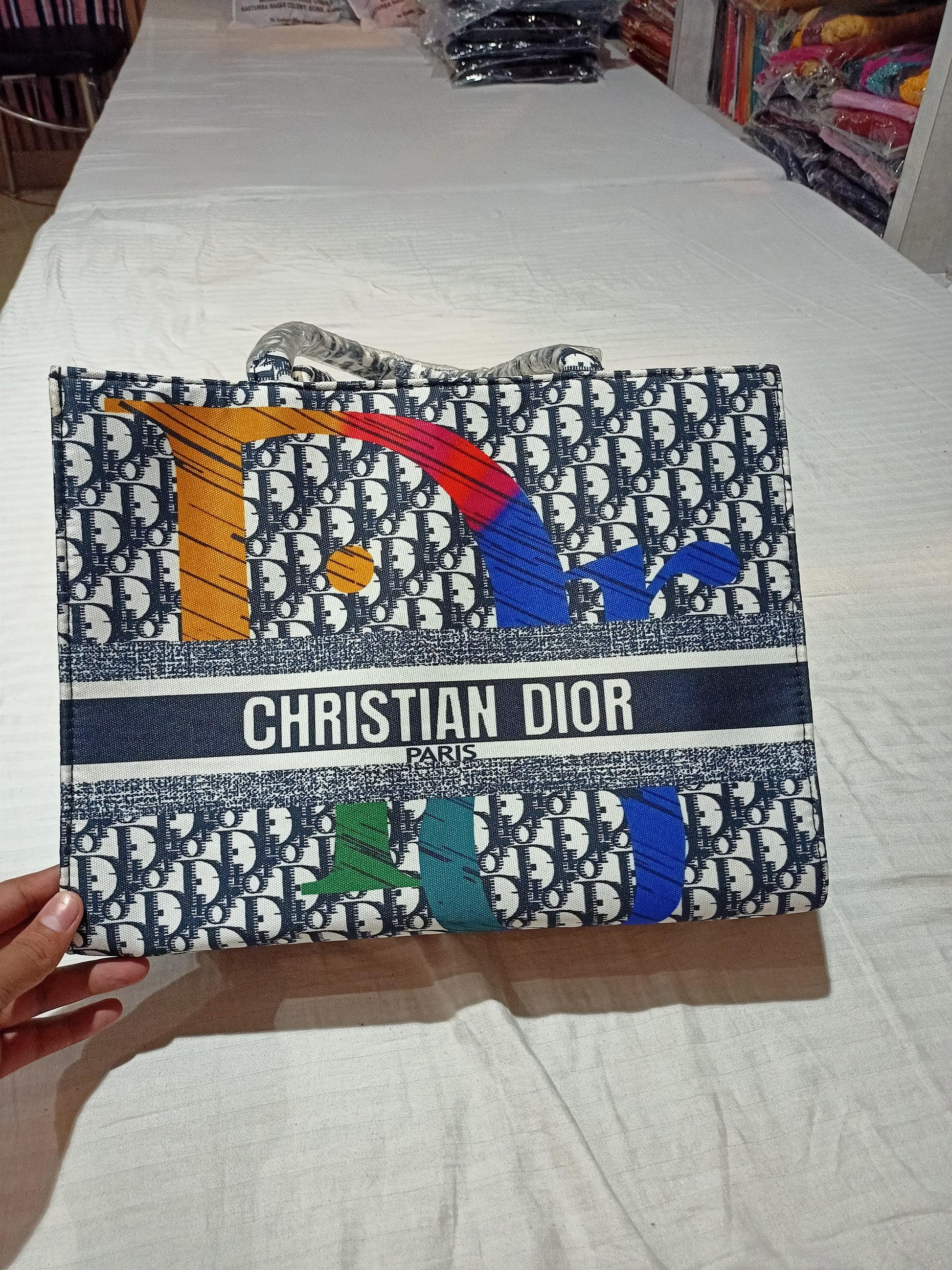 Turn heads wherever you go with this stylish and vibrant Christian Dior-inspired tote bag. Featuring an all-over monogram print with a bold splash of multicolour design elements, this handbag brings together classic elegance and playful charm. The prominent “CHRISTIAN DIOR PARIS” branding across the center enhances its luxury appeal, making it a must-have accessory for fashion-forward women.