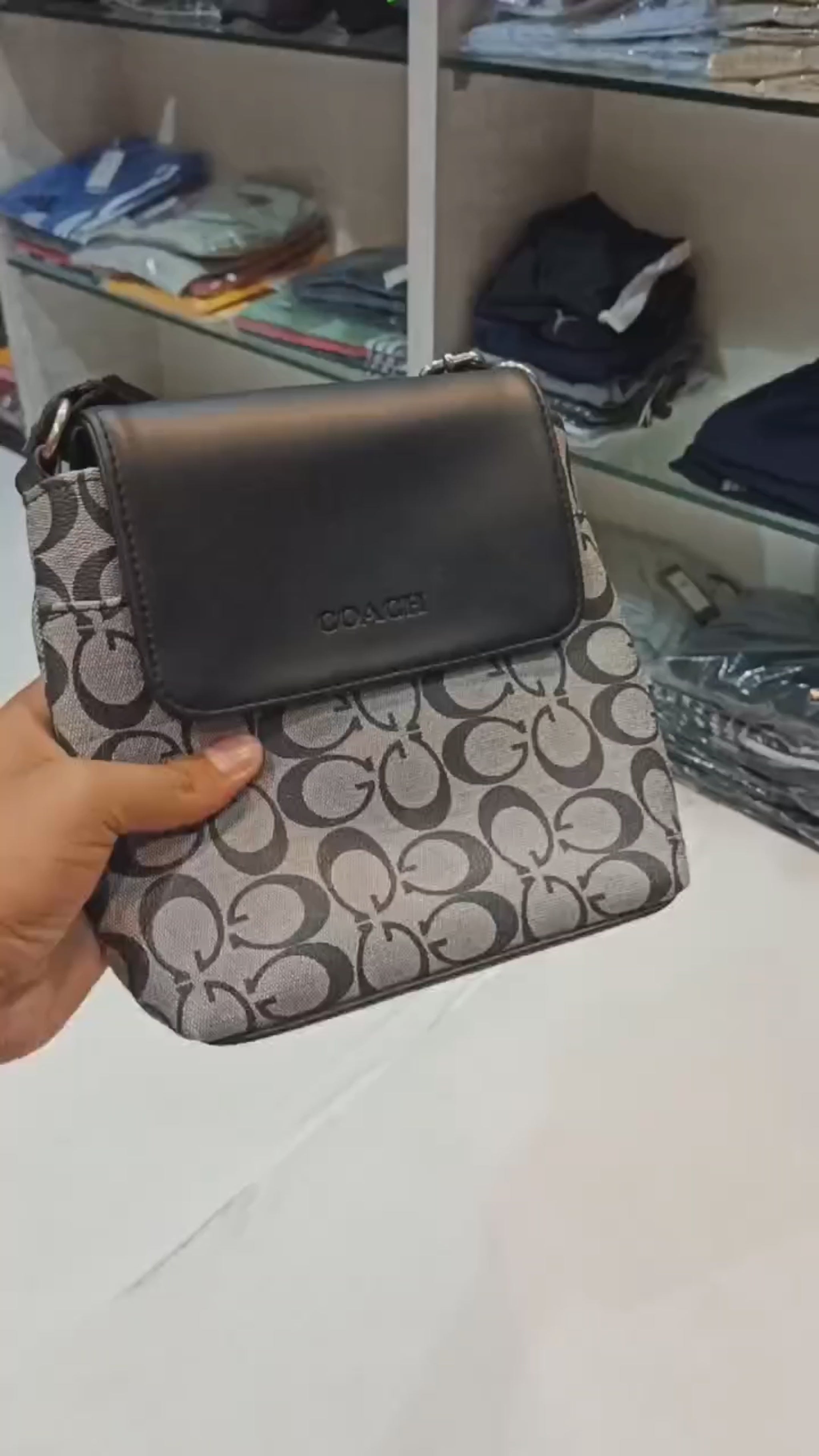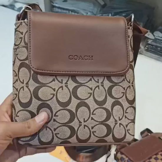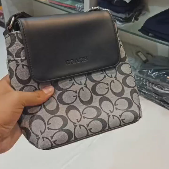Elevate your everyday style with this elegant Coach Signature Canvas Mini Shoulder Bag. Featuring the iconic 'C' monogram pattern across a durable canvas body, this bag exudes timeless sophistication and luxury. The smooth leather flap with the embossed COACH logo adds a refined contrast to the textured base, making it a perfect companion for both casual and semi-formal outings.