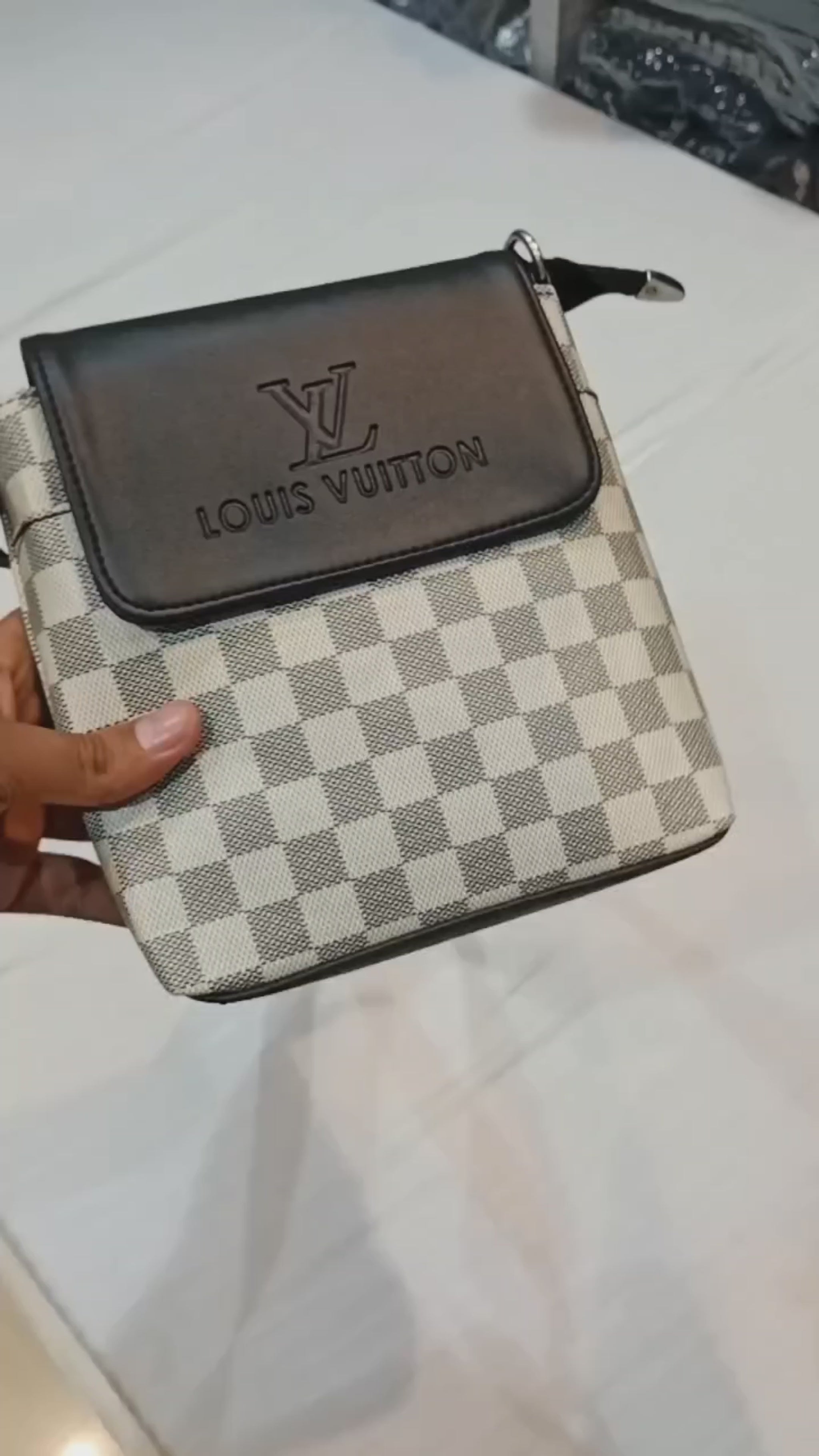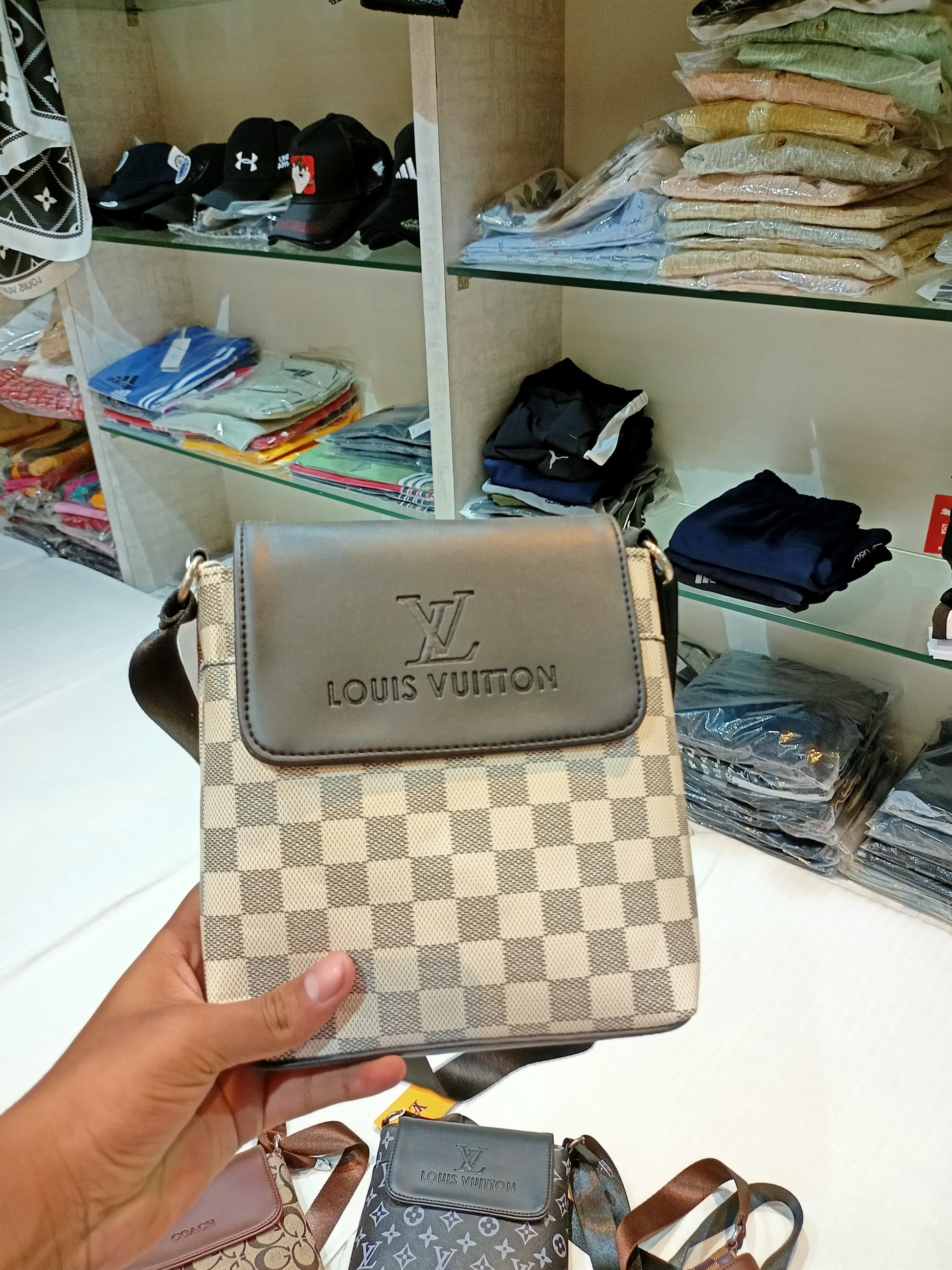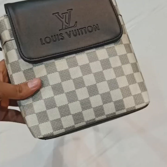Step out in style with this Louis Vuitton-inspired sling bag featuring the brand's signature checkered design in an elegant beige and white pattern. The sleek flap closure in smooth faux leather is embossed with the LOUIS VUITTON logo, adding a premium touch to the accessory. Designed for both fashion and function, this compact yet spacious bag is perfect for carrying daily essentials like your phone, wallet, keys, and more.