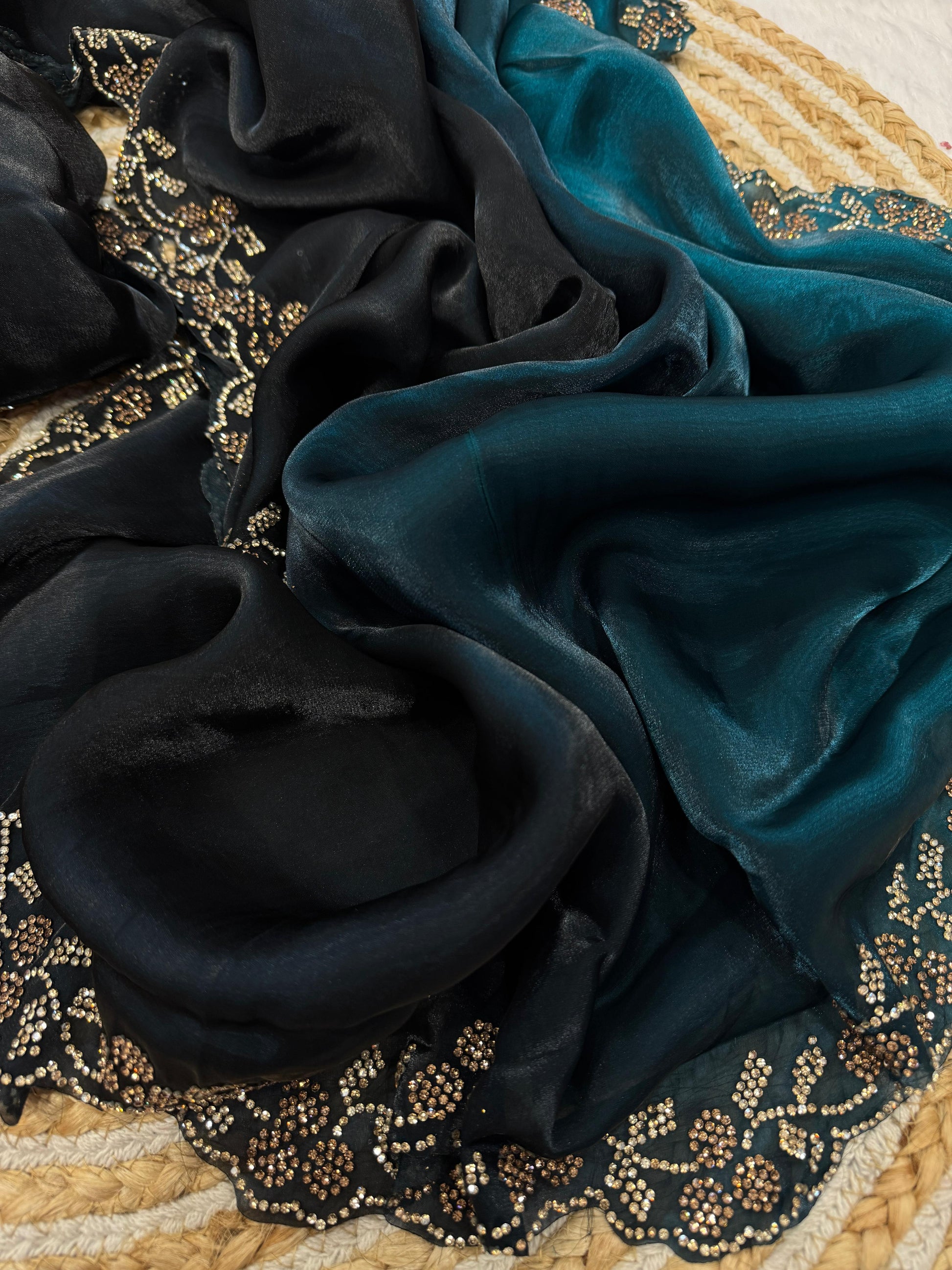 🌌 Highlight: Delicately handcrafted sequins and jarkhan work bring out vibrant elegance in every drape.